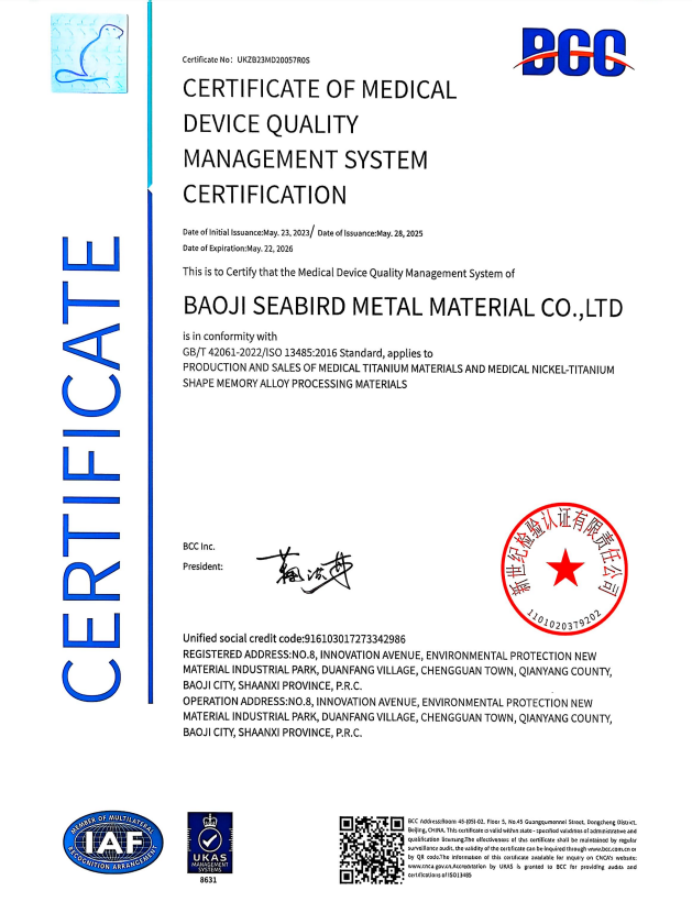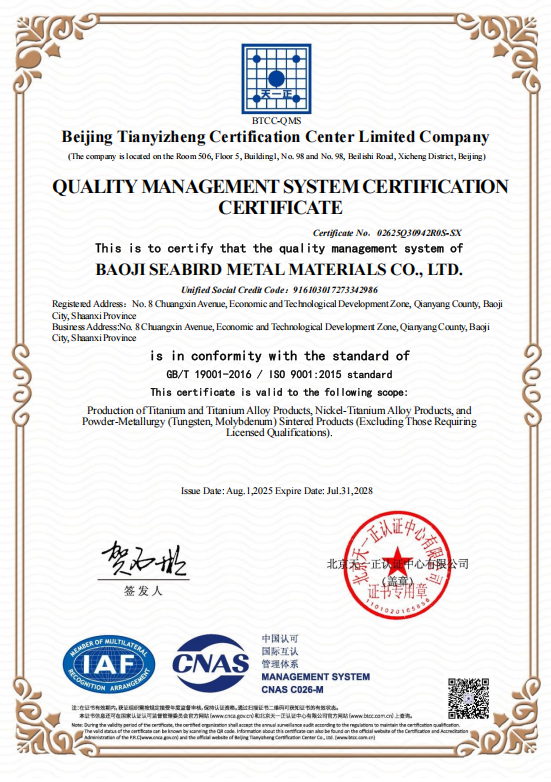 Founded in 2001, Baoji Seabird Metal Materials (same as Sunrise Rare Metal Material) has dedicated over 25 years to the Nitinol industry. Spanning 35,000 square meters, we are a high-tech enterprise and a renowned solution provider in the field. With our Nitinol Division at the core, we have established a comprehensive system integrating R&D, smelting, processing, and sales. Leveraging our proprietary H721 ultra-pure, large-scale ingot casting technology, we achieve full-process independent production, with our 1,200kg-grade technology setting an industry benchmark.